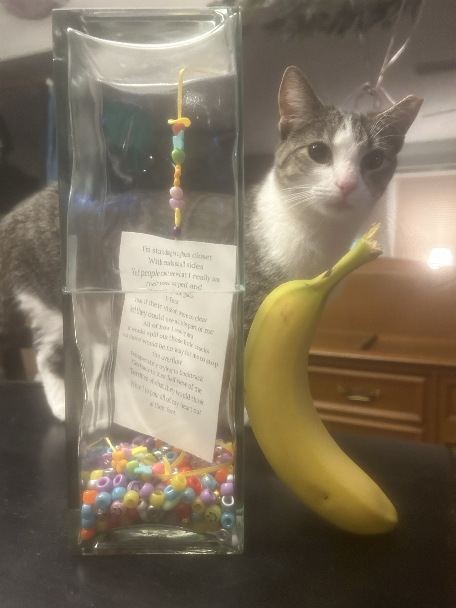 Glass Closet, Mixed Media --- Cat and Banana for scale